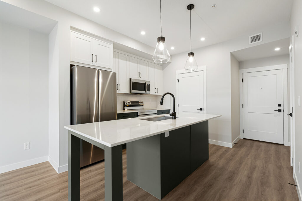 Pristine finishes like quartz countertops and an island perfect for entertaining at, an open concept floor plan, and a second bedroom are just a few of the things that make this 676 SQFT condo so livable! (square footage may vary slightly by development/building)